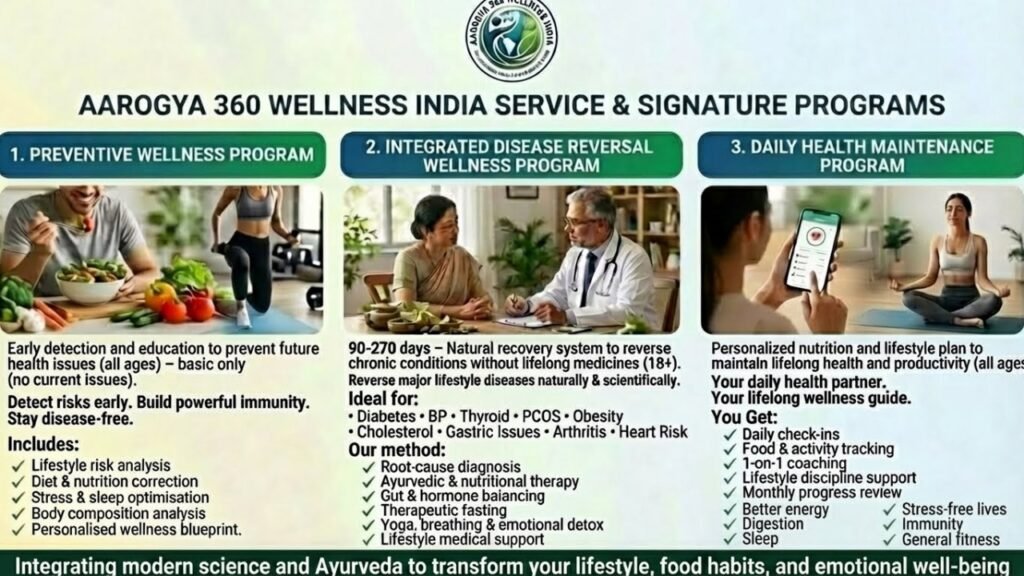 Aarogya 360 is your complete wellness destination — combining natural healing, modern diagnostics, lifestyle science, and daily health support to help you live disease-free, energetic, and balanced.